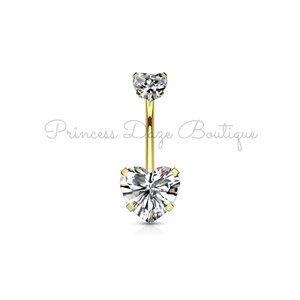 Gold Double Heart Zircon Belly Button Ring