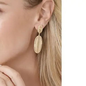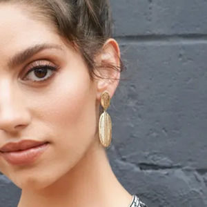 Gold Double Oval Dangle Statement Earrings