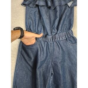 Gold Drama Girl's Denim Chambray Elastic Waist Strapless Jumpsuit Size M Pockets