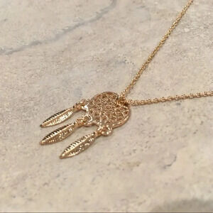 Complete your boho look with this dream catcher necklace that keeps only good vibes coming your way! Clasp closure. Available in silver and gold. Price per piece. Adjustable length from 17"-19" see silver in another listing.