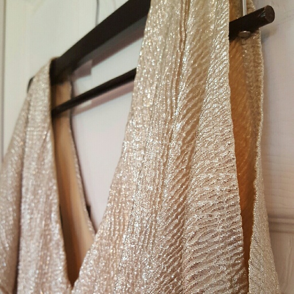 Has more of a metallic gold look! Size Small! Has side loops for a belt. No belt with purchase. Has peek a boo sleeves!! Good condition!! Lightweight when you wear it!!