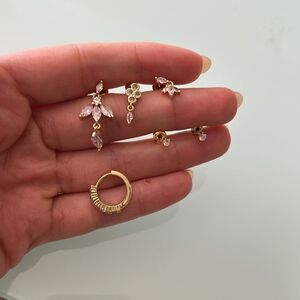This exquisite earring set features a blend of gold and pink crystals, perfect for adding a touch of elegance to any outfit. Ideal for both casual and formal occasions.