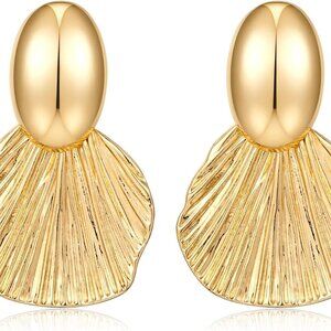 Gold Earrings Dangle Chunky Fan-shaped Earrings Shell Earring for Women Two-Tone