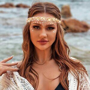Gold rhinestone elastic headpiece is made of sparkly crystal and secured with a sturdy elastic cord.
