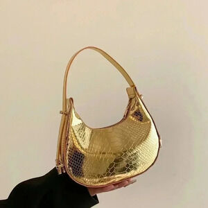 Gold Elegant Women's Metallic Embossed Hobo Bag Solid Color Shoulder Bag