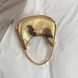 Gold Elegant Women's Metallic Embossed Hobo Bag Solid Color Shoulder Bag