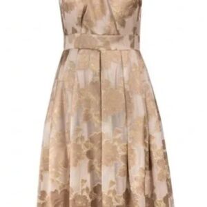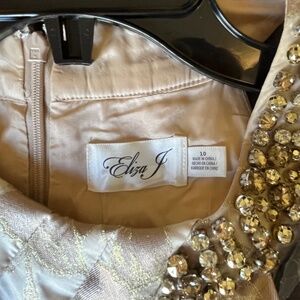 Gold Eliza J beaded halter jacquard ball gown size 10