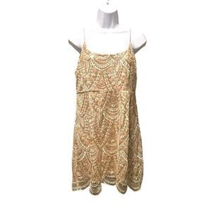 Gold Embellished Mini Dress Size Large Sequins & Embroidery Scallopped Hem