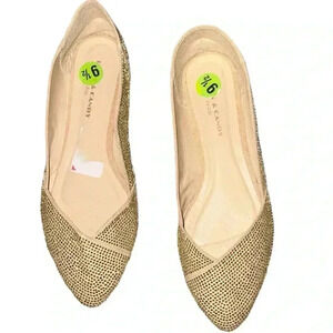 Gold Embellished Pointed-Toe Flats