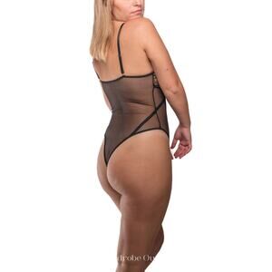 Gold Embroidered Black Mesh See-Through Sexy Bodysuit Teddie Lingerie