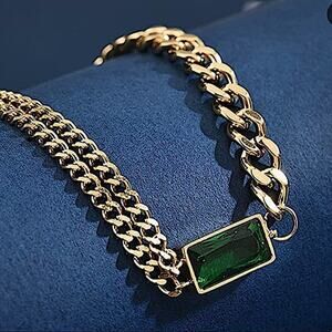 Gold Emerald Pendant Necklace, Chain Link Design, Perfect Special Occasions