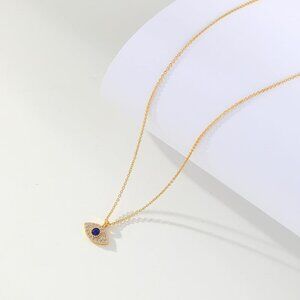 Gold Evil Eye Necklace,14K Gold Plated Dainty Solitaire Minimalist Diamond Evil