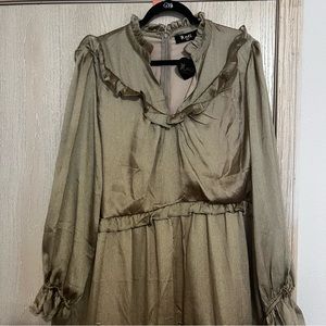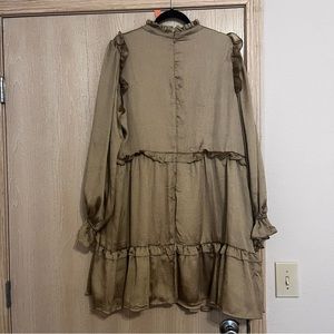Good Ruffled faux silk dress. Fall themed. Long sleeve. V-neck.