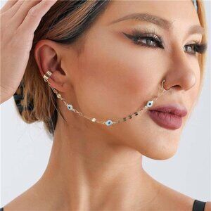 #NoseRingChain #FauxSeptum #EdgyJewelry #GoldJewelry #TrendyAccessories #FestivalStyle #HypoallergenicJewelry #DangleEarrings #BohoChic #GiftForHer