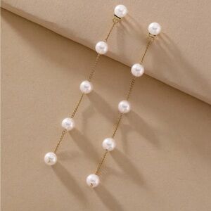 Gold Faux Pearl Drop Earrings