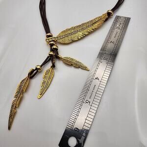 Golden metal feather statement necklace. 20"-22" Necklace.