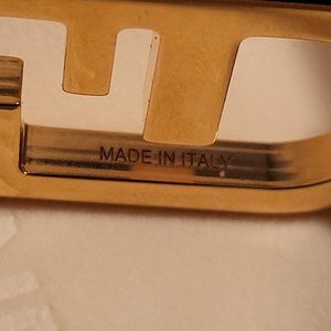 Made of gold-finish metal with double Fendi O’Lock clip, to use in combination with any bag with attachment points or joined as a necklace.