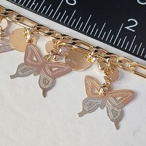 Gold Figaro Chain Anklet Bracelet with Tricolor Gold Butterfly Charms