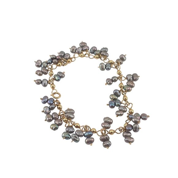 Gold Filled Chain Bracelet With Gray Freshwater Pearls Spring Clasp