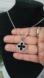 Quatrefoil flower clover pendant with black and clear crystal stones