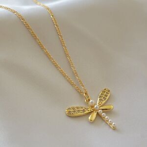 Gold Filled Dragonfly Necklace Gold Figaro Chain Dragon Fly Pendant Necklace