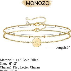 Gold Filled Initial Bracelet Layered Beaded Letter Monogram Jewelry Gift for Wom