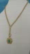 Gold Filled Rolo Belcher Chain Malachite Pendant Charm Necklace Medallion