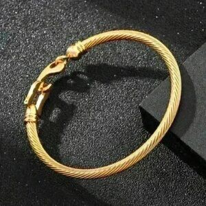 Gold Twist Cable Bracelet: A sleek and sophisticated bracelet featuring a twist cable design in polished gold-tone. This timeless piece is perfect for adding a touch of elegance to both casual and formal ensembles