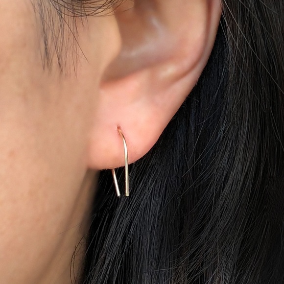 Brand new 14k Gold Filled horseshoe shaped threader earrings. These super minimalist earrings just hook on without any backings or closures. They are extremely light weight and comfortable. Approximately 0.6-inch long and 0.4-inches wide and made with 20 gauge wire. You receive 1 pair of earrings in gold. Price is firm. I also have silver available.