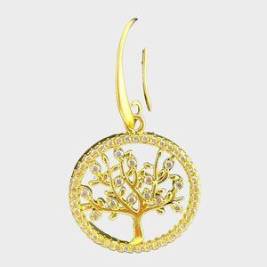 Gold Filled Tree of Life Earrings Pave CZs 18KT Gold Filled