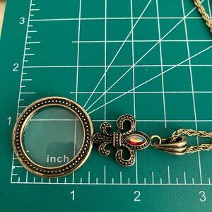 Gold Fleur de Lis Necklace 29" X-Long Magnifying Glass Vintage Plus Size Plated