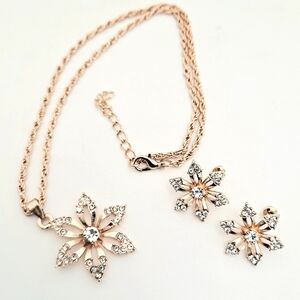 Womens elegant Rhinestone gold tone flower necklace & earrings set for evening bridal wedding formal & special occasions, New no tags