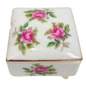 Gold Footed Japan Porcelain Trinket Box Hand Painted Roses Gold Trimmed Candle