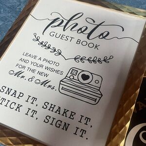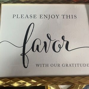 Set of gold framed signs with elegant designs. Perfect for events or home decor.