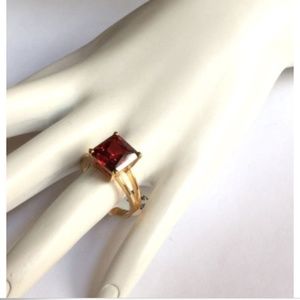 Gold Garnet Ruby Cocktail Ring Red CZ Size 10