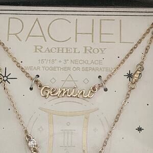 New in box Rachel Rachel Roy Gemini necklaces. Two gold tone Gemini Zodiac sign necklaces. There is a 5 inch and 18 inch necklace + 3 inch (adjustable) included.