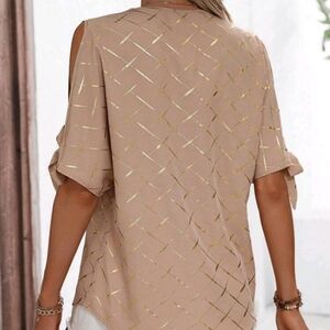 Gold Geo Print Knot Cuff Split Sleeve Blouse