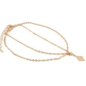 Brand new in original packaging. Bohemian Ankle Bracelet. Boho Double Chain Anklet Dainty Foot Jewelry Summer Sexy Barefoot Beach Accessory! Double layer gold chains adorned by a geometric rhombus shaped pendant. 7.87", Attached in back w. lobster clasp closure & 2" extender (adjustable). Color: Gold. Metal: zinc alloy. Nickel & lead compliant. All sales are final, please ask all questions prior to purchasing! Also available in silver!