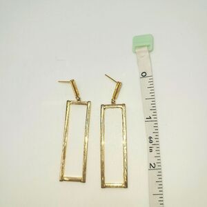 Gold toned geometric earrings perfect for any occasion. Add a touch of sophistication to your outfit.