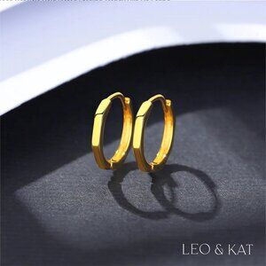 Gold Geometric Hexagon Earrings. 925 Sterling Silver. #1029