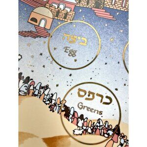 Betsy Platkin Teutsch is the artist and created a beautiful set. This listing is for the Seder plate only and it is in lovely condition. 15" in diameter, rich in color.