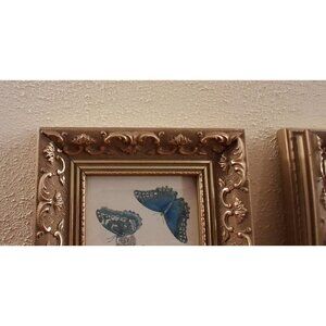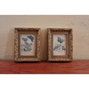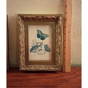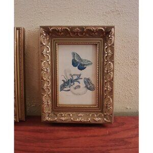 Gold Gilt Frame Wood Gesso Ornate Butterfly Print Blue Canada Vintage Set of 2