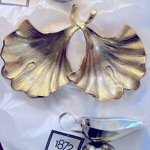 Gold Ginkgo 2 Part Dish Crafted in Gold Plate Lifelike Proportions Naturalism