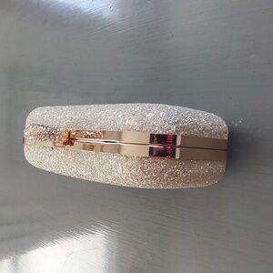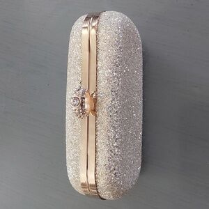Shimmer and shine with this elegant gold glitter clutch. Perfect for evening events and special occasions.