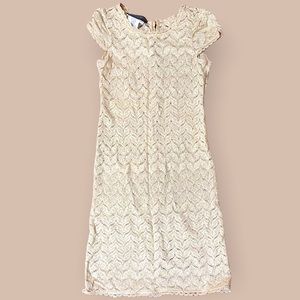 Good condition. Gold dress with gold shimmer through it. This dress is see-through. Cap sleeves