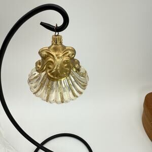 Gold Glitter Glass Clam SeaShell Christmas Ornament Old World Christmas 4" VTG