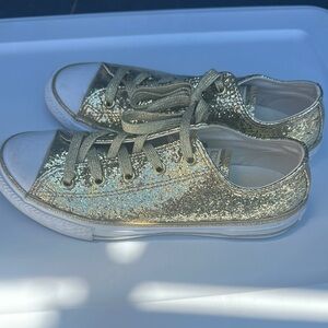 Sparkle with every step in these gold glitter kids sneakers. Perfect for adding a touch of shine to any outfit.