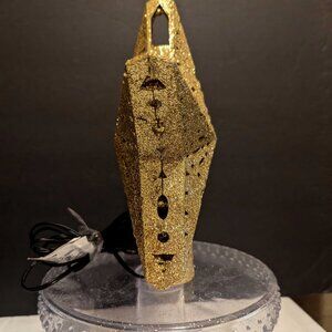 Gold glitter and warm white lights Christmas Tree star / topper. Lights oscillate and reflect above the star for a moving effect! Approximately 9” High X 8" across X 3" deep at center. Pre-owned, very nice condition, UL approved, working.