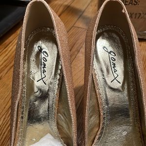 Gold Glitter Metallic Stacked Pumps. (Adala Style)