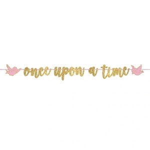 Gold Glitter "Once Upon A Time" Script Letter Banner - 12' x 8"